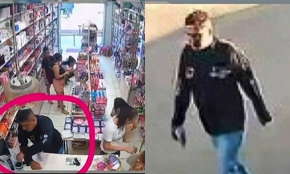 Nas imagens, o suspeito aparece debruçado sobre o balcão, conversando com a atendente, enquanto o estabelecimento estava relativamente movimentado. Ao notar a presença das câmeras, ele coloca o capacete para tentar esconder o rosto.
