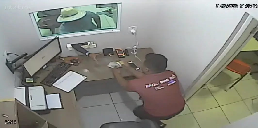O circuito interno de segurança da clínica registrou toda a ação criminosa que mostra o assaltante chegando no local em uma motocicleta, acompanhado de um comparsa. Ele então desce do veículo, entra no centro médico e anuncia o assalto para os profissionais que trabalham no local. O assaltante levou os pertences dos trabalhadores.