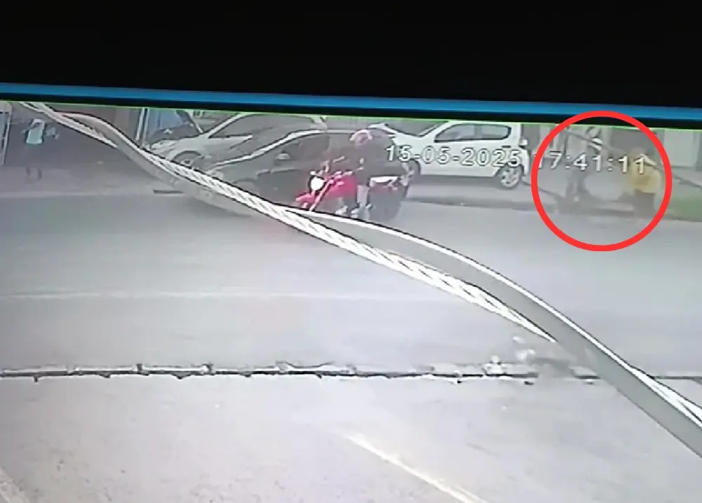 Nos registros é possível ver dois suspeitos chegando em uma motocicleta e abordando um homem no local, momento em que a vítima tenta empreender fuga. No entanto, outros dois criminosos em uma segunda motocicleta roubando o homem.