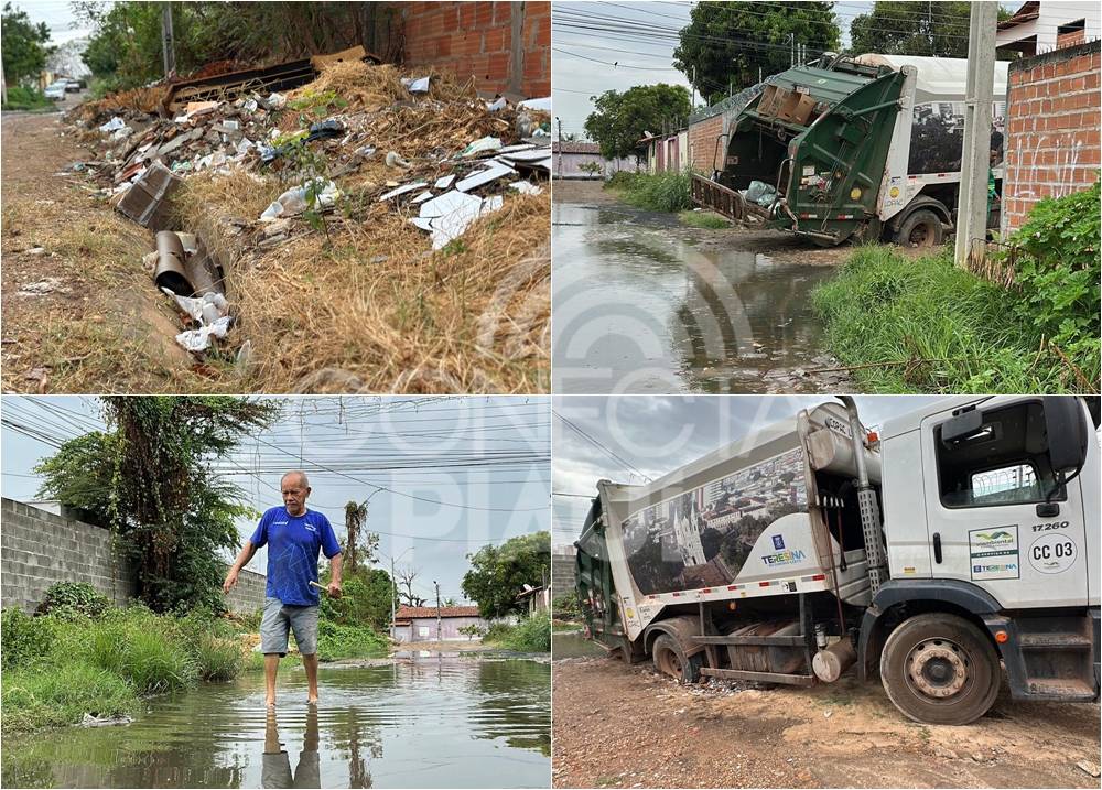Moradores denunciam abandono e caminhão do lixo atola na zona Norte de Teresina