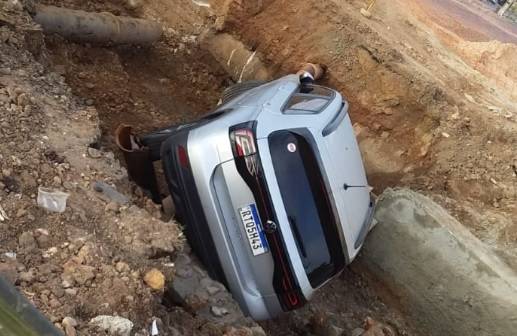 O local conta com uma iluminação pública péssima e a via não estava sinalizada quando ele dirigindo o seu veículo terminou caíndo em uma grande cratera, que faz parte de uma obra de galeria inacabada.