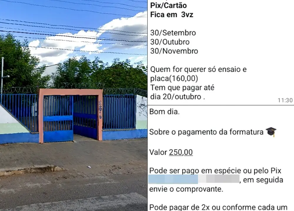 De acordo com mensagens divulgadas em grupos de WhatsApp e repassadas à reportagem, quem desejasse um ensaio fotográfico com a criança segurando a placa comemorativa precisou pagar R$ 160, com prazo final no dia 20 de outubro. Já o valor cobrado pela formatura é de R$ 250, com possibilidade de parcelamento em até duas vezes, mas com quitação total até o final de novembro. Segundo um dos pais, em alguns casos o valor chega a R$ 360.