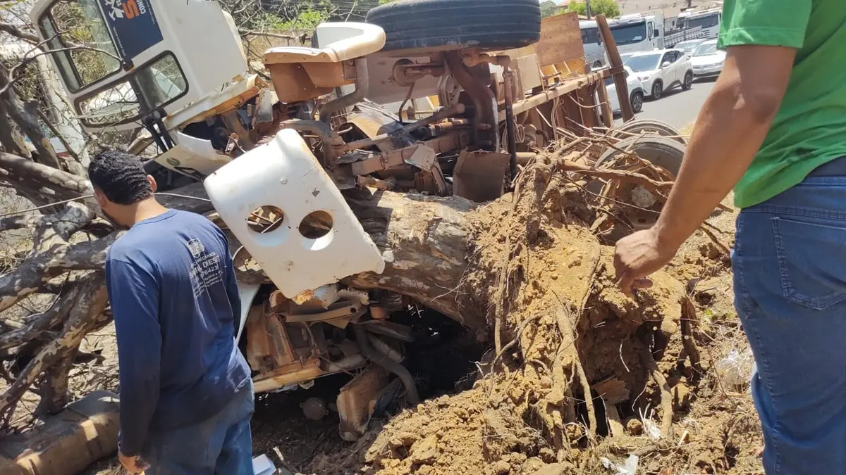 Caçamba tomba e deixa motorista ferido e preso às ferragens na BR-316, em Teresina