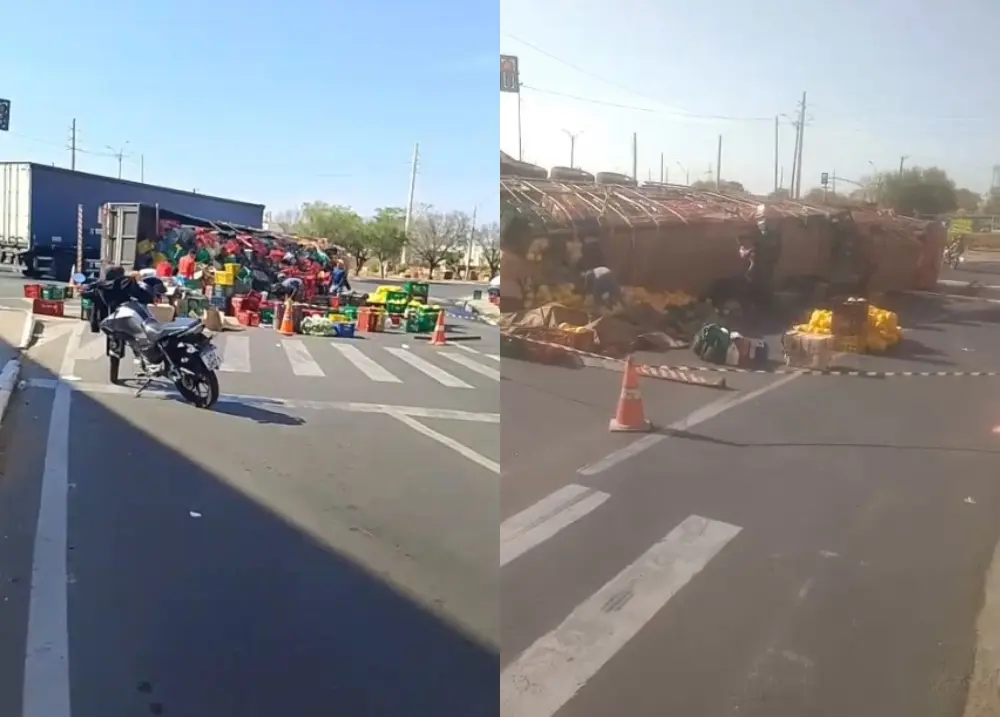 Caminhão carregado de frutas tomba e compromete trânsito na zona Sul de Teresina