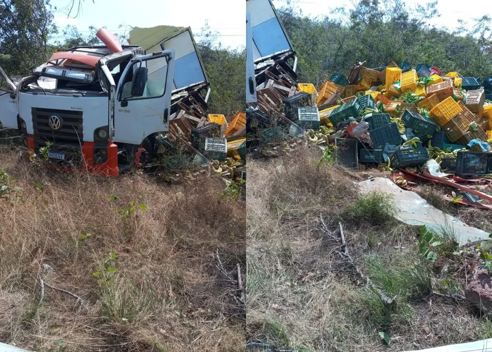A carga ficou espalhada no local, mas, apesar do impacto, não houve registro de feridosUm caminhão que transportava bananas tombou na manhã desta terça-feira (26/08) às margens da BR-343, na zona rural de Buriti dos Lopes, litoral do Piauí.