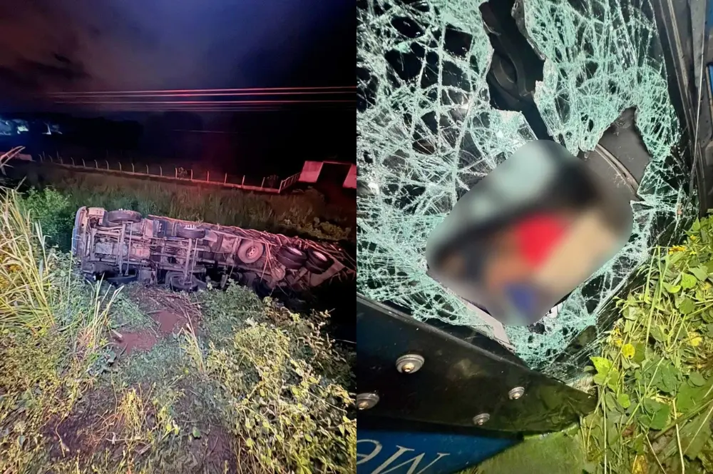 Caminhoneiro de Teresina tem braço esmagado após caminhão tombar em Geminiano