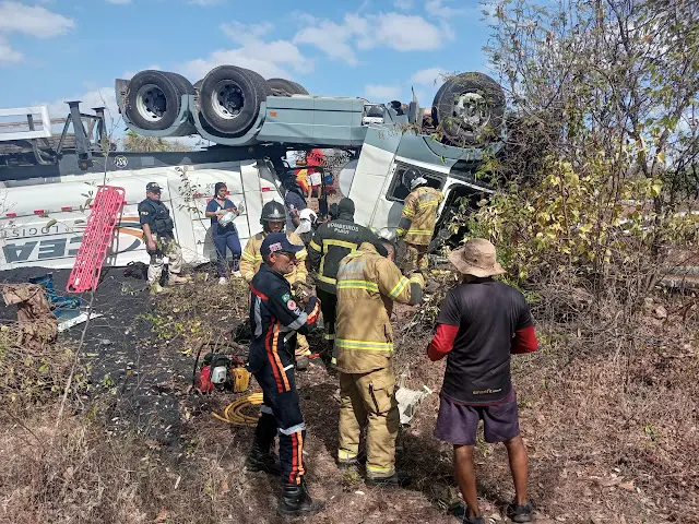 O caminhão tombou no barranco e a cabine ficou completamente destruídaUm grave acidente ocorreu na curva do Rio Pirangi, na BR-343, zona rural de Buriti dos Lopes, no norte do Piauí, na manhã deste sábado (18/10). O caminhoneiro, identificado apenas pelo prenome Yuri Vieira da Silva, 37 anos, ficou preso às ferragens após o tombamento de uma carreta bitrem, de placa SAT2F55, da empresa Logística & Serviços "CearaLong". As informações são do Portal do Rurik.