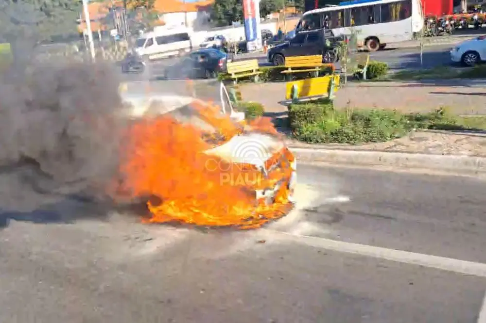 Fiat Uno foi completamente tomado pelas chamas; causas ainda são desconhecidasUm carro modelo Fiat Uno pegou fogo no início da manhã desta quinta-feira (17) no cruzamento da avenida Frei Serafim com a rua Goiás, no Centro de Teresina. Imagens obtidas pelo Conecta Piauí mostram o veículo em chamas, com intensa fumaça ao redor.