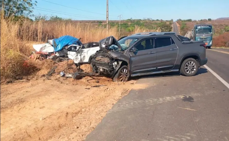 A colisão frontal envolvendo dois carros deixou ambos destruídos; a PRF foi acionada ao localUm grave acidente, registrado na manhã desta quarta-feira (06/08), resultou na morte de duas pessoas na BR-135, entre os municípios de Cristino Castro e Alvorada do Gurguéia, no Sul do Piauí. A colisão envolveu dois veículos: uma Fiat Toro e uma Fiat Strada, esta última com placas do estado de Minas Gerais.