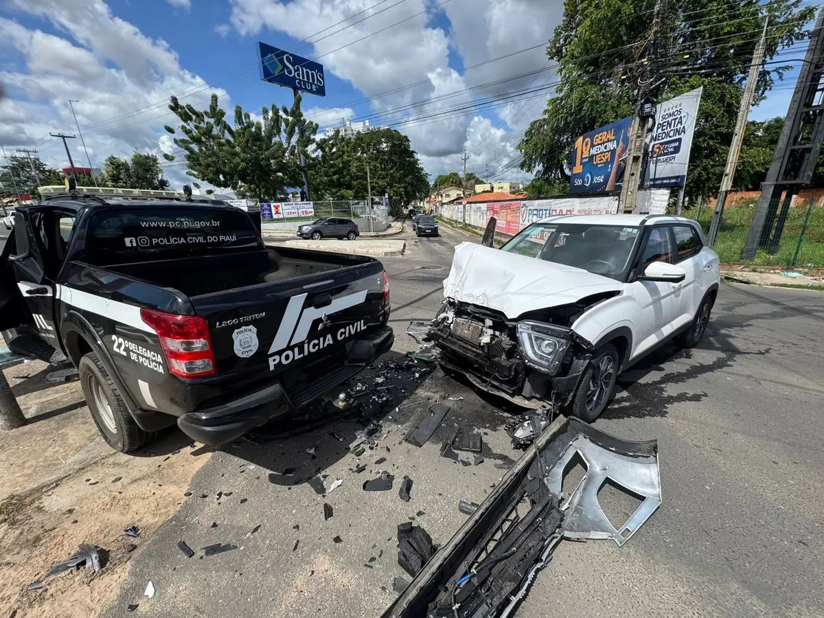 Colisão envolvendo viatura da Polícia Civil deixa delegado ferido em Teresina