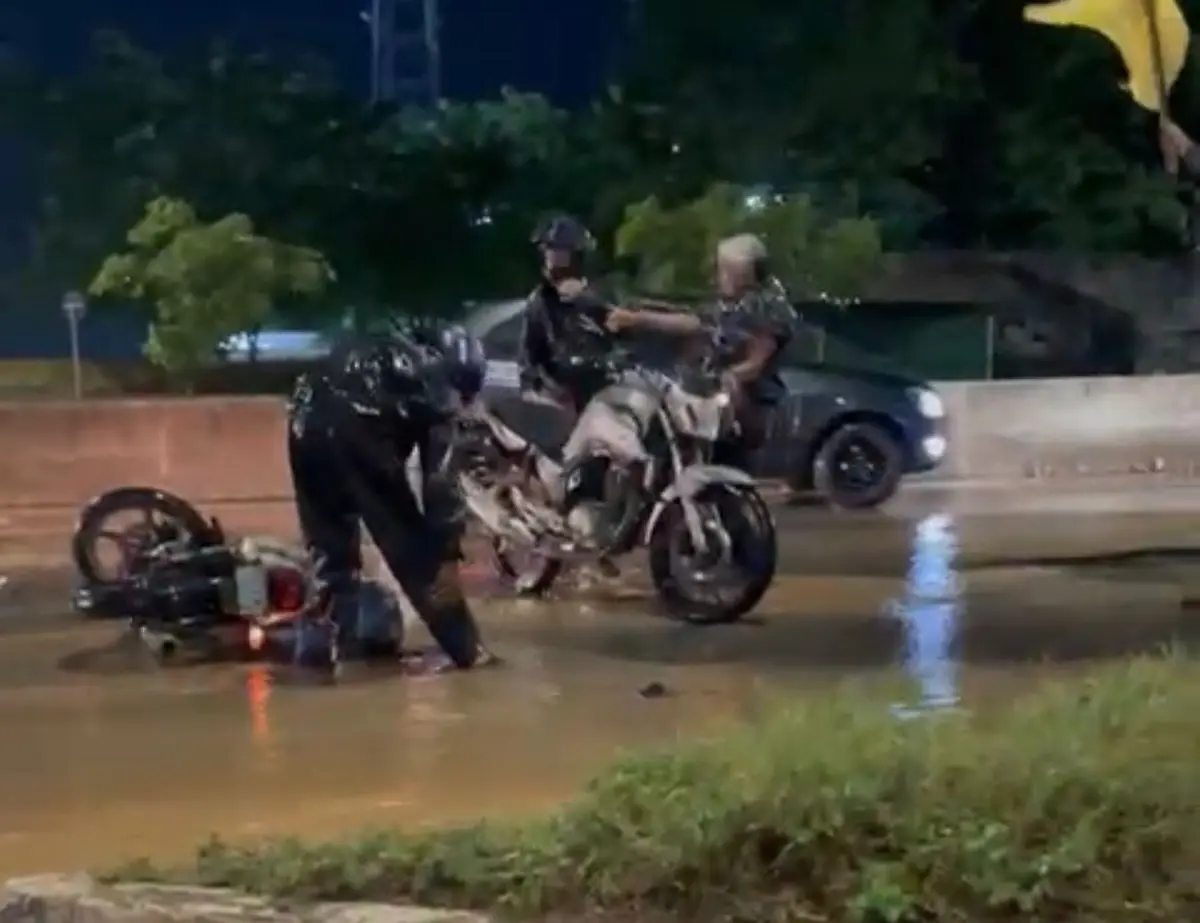 Na noite desta quarta-feira (21), uma forte chuva foi registrada nas proximidades do bairro Parque Piauí, em Teresina. O temporal, acompanhado de pista molhada e buracos, resultou em várias quedas de motociclistas na BR-316.