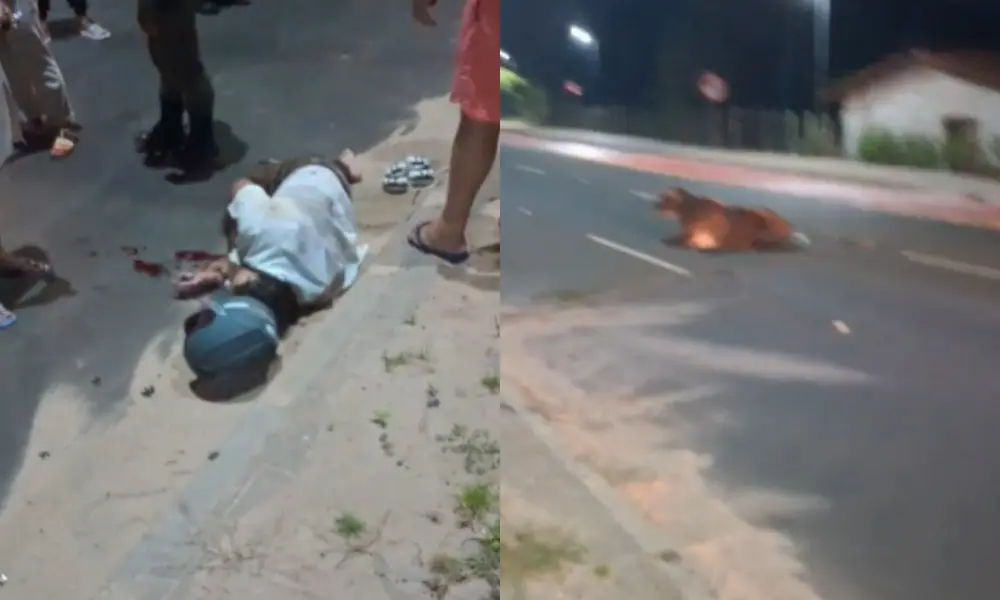 Jovem fica gravemente ferido após colidir com vaca na Estrada da Alegria em Teresina