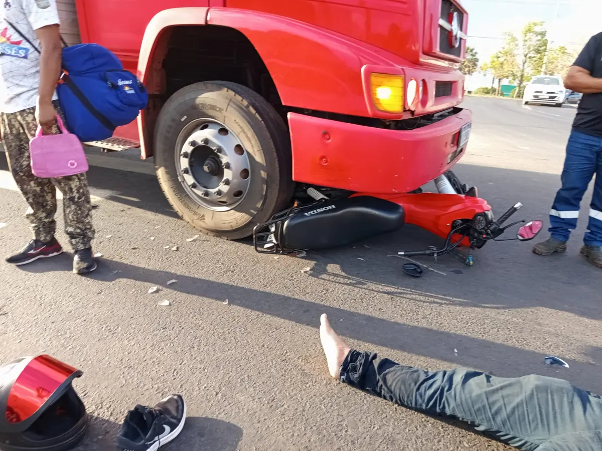 Motocicleta vai parar debaixo de caminhão após acidente na zona Leste de Teresina