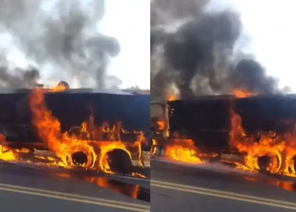 No Sul do Piauí, caminhão carregado de madeira pega fogo na BR-135