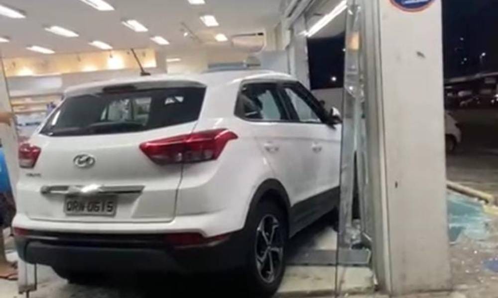 Nas imagens, é possível ver a fachada de vidro completamente destruída e o veículo dentro do estabelecimento. Ainda não há informações sobre o que teria causado o incidente.