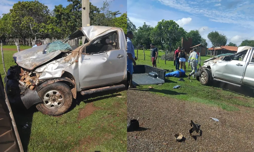 Informações preliminares apontam que o acidente ocorreu quando um dos pneus da caminhonete, modelo Toyota Hilux, carregada com madeira, estourou. No veículo estavam o motorista, identificado como Tadeu, um conhecido empresário local, e dois funcionários. Eles estavam a caminho de uma fazenda quando perderam o controle e o veículo capotou.