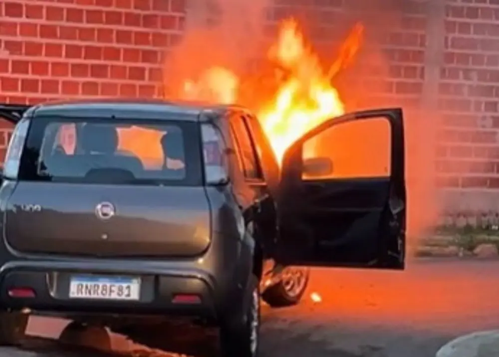 Veículo pega fogo em avenida de Boqueirão do Piauí nesta segunda