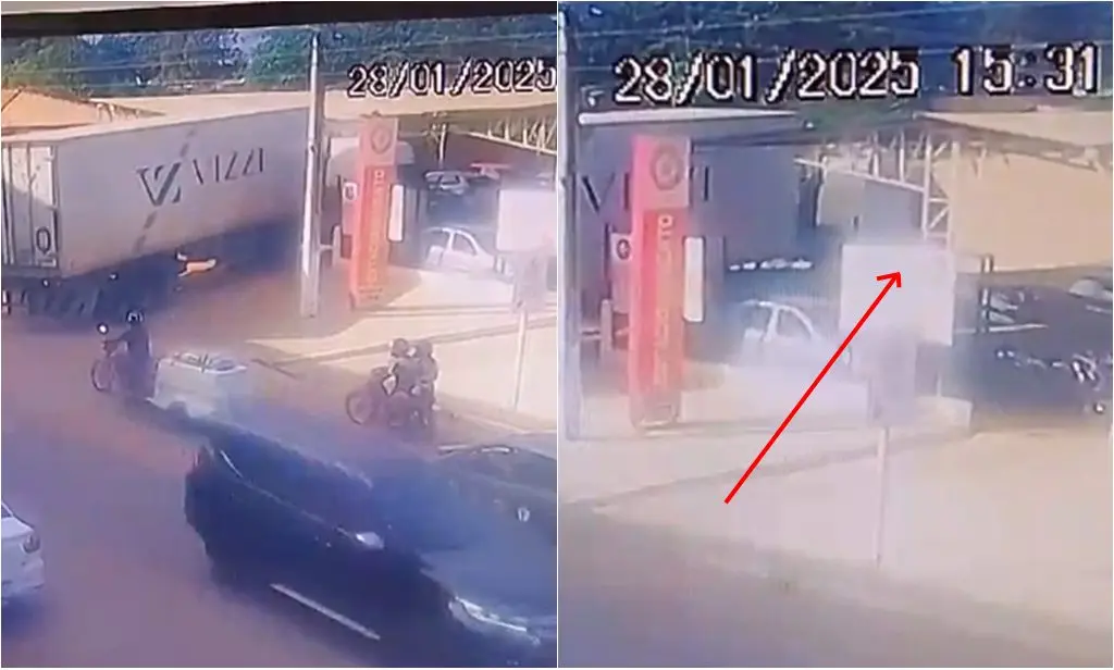 O incidente ocorreu por volta das 15h30, quando uma manobra mal executada pelo motorista do veículo levou parte da estrutura a ceder, atingindo alguns carros que estavam estacionados no local.