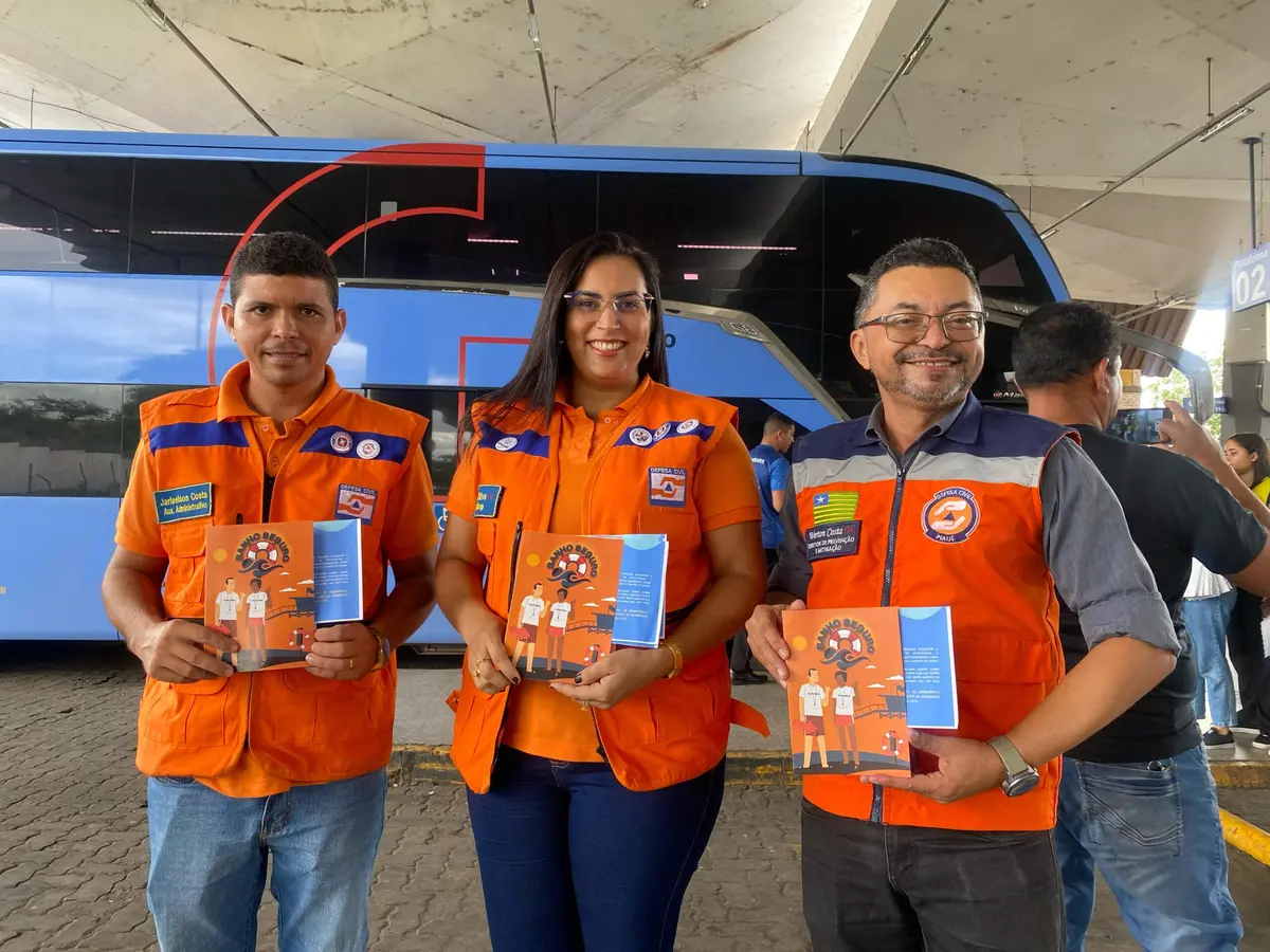 A Defesa Civil participou, esta semana, de uma ação do Programa Vida no Trânsito, da Secretaria da Saúde (Sesapi), na Rodoviária de Teresina. Durante o evento, a Sedec distribuiu materiais educativos e orientou os viajantes sobre os protocolos de segurança para um banho seguro. Além disso, também foram distribuídos informativos sobre os cuidados gerais para os dias de folia.