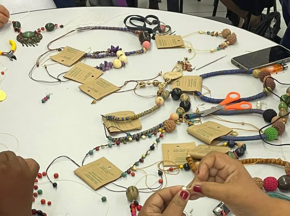 A artesã Rosália, responsável pela formação prática, destacou a dedicação das participantes. “Trabalho com sementes, palha, coco, couro e fibra de buriti, sempre buscando valorizar cada peça. Aqui na Casa, as alunas estão muito empenhadas. Algumas já produzem colares, brincos e pulseiras com criatividade e qualidade. Tenho certeza de que, ao final do curso, teremos muitas peças lindas e únicas”, afirmou.