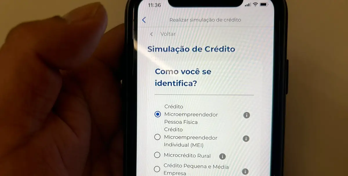 A primeira etapa para realizar a simulação é identificar a atividade associada ao solicitante do serviço, sendo elas: crédito para pessoa física, crédito para Microempreendedor Individual (MEI), microcrédito rural, crédito para Pequena ou Média Empresa, crédito para Inovação e Tecnologia (Finep) ou crédito Turismo (Fugentur).