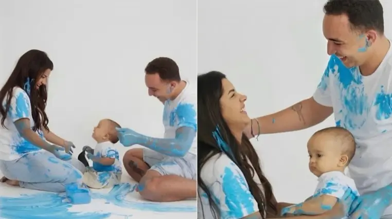 De forma discreta, o casal gravou um vídeo junto com o filho mais velho, Jorge, de 1 ano, para anunciarem que esperam o nascimento de mais um menino! Nas imagens, os dois apareceram usando uma tinta para pintarem as roupas um do outro. No final, eles revelaram que a cor da tinta era azul, representando o gênero masculino.