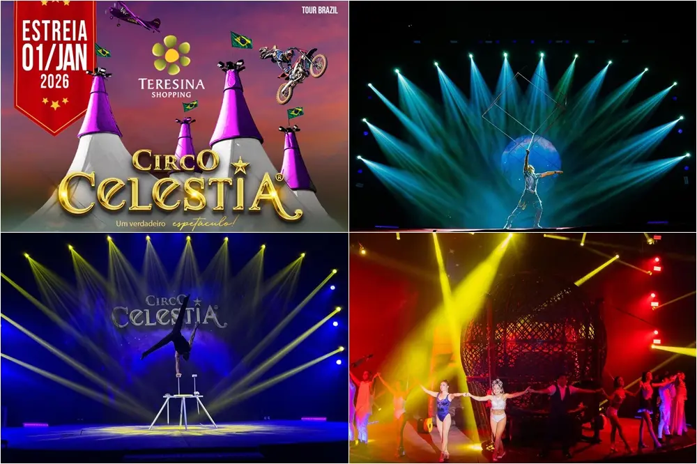 Espetáculo internacional chega dia quinta-feira (01/01) com sorteio de ingressosTeresina recebe, pela primeira vez, o Circo Celestia, um dos espetáculos circenses mais renomados do mundo, com estreia marcada para quinta-feira (01/01). A grande tenda climatizada foi instalada na Arena Praia de Verão, no estacionamento do Teresina Shopping, com capacidade para até 1.900 pessoas por sessão.