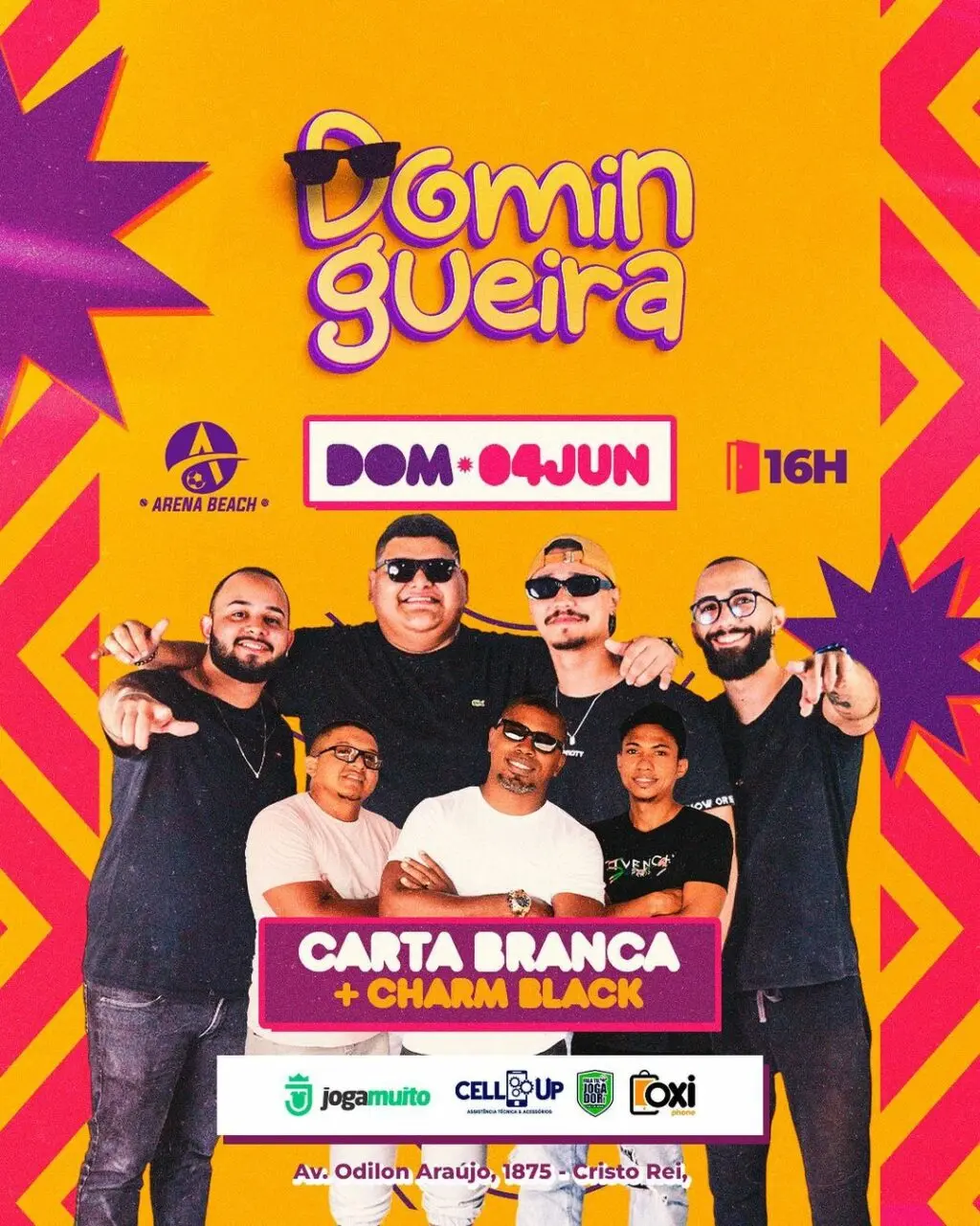 O evento está programado para ocorrer na Arena Beach, situado no bairro Cristo Rei em TeresinaO evento Domingueira, que acontece no próximo domingo (04/05), às 16h, será realizado na Arena Beach, localizado avenida Odílio Araújo, bairro Cristo Rei, situado na zona Sul de Teresina.O evento que tem abordagem no samba, conta ainda com a participação do Grupo Carta Branca e Charm Black.