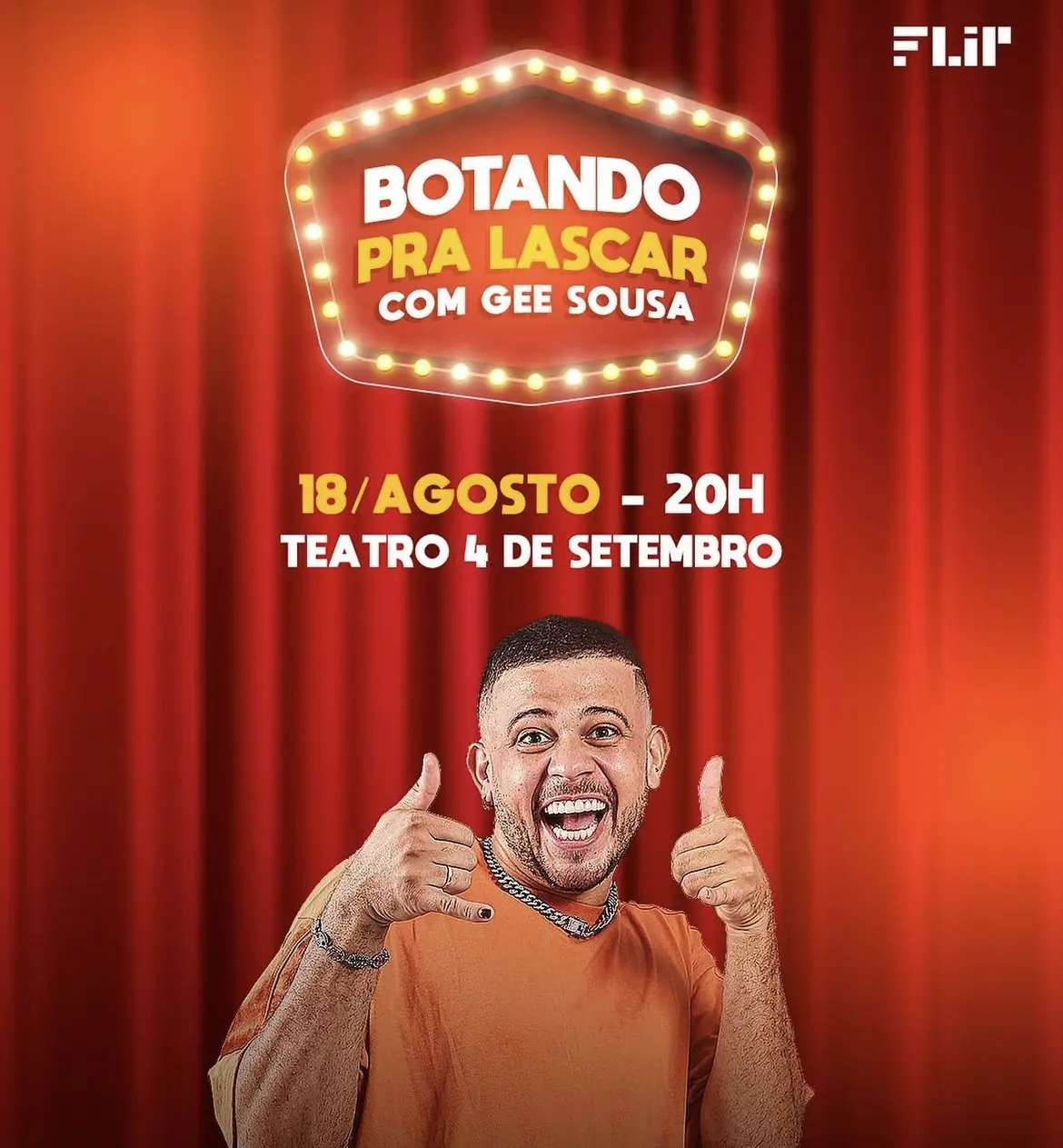 Pôster oficial do espetáculo “Botando pra lascar” do humorista Gee Sousa
