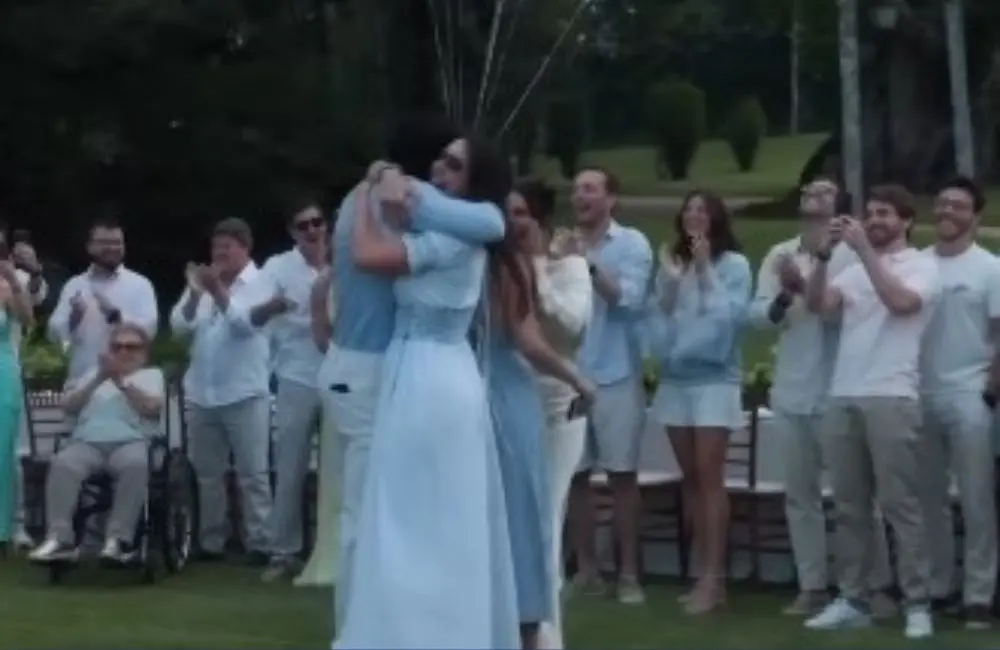 A cena, registrada em vídeo e publicada nas redes sociais, mostra Mariana visivelmente emocionada com o momento. Ela aparece ao lado de Juca, segurando os balões, enquanto reage com lágrimas e um sorriso ao saber que terá um menino.