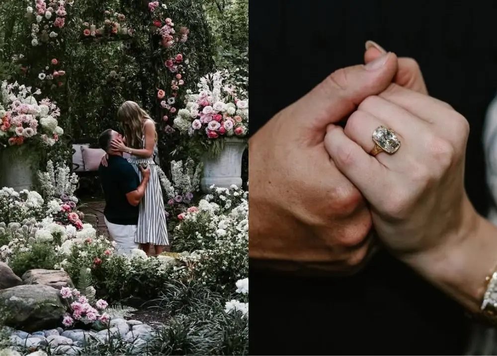 Para anunciar o noivado, o casal publicou uma série de fotos do pedido e do anel de noivado ganhado pela cantora. No carrossel, ainda foi inserida a canção "So High School", que Taylor Swift lançou em 2024 sobre o relacionamento dos dois.