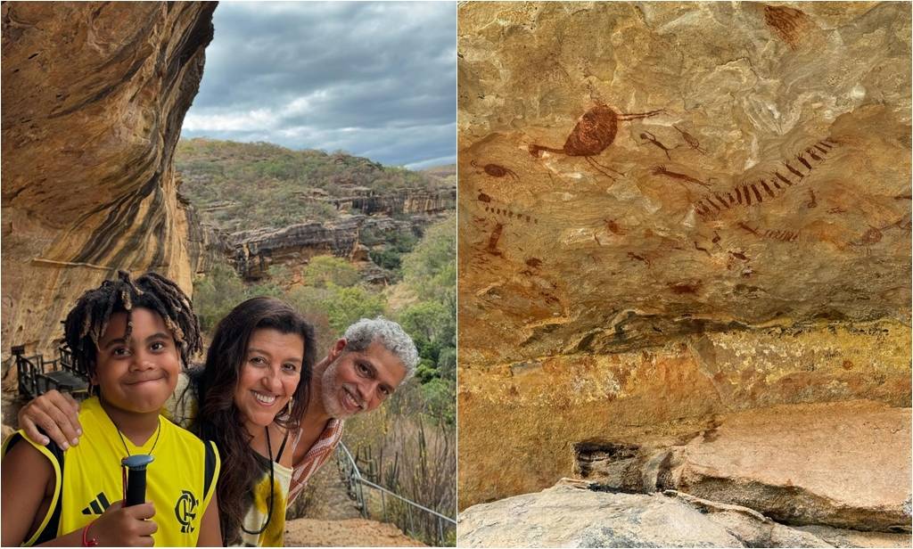 "Viagem emocionante ao Piauí! Serra da Capivara! Férias dos meninos e eles aprendendo tanto quanto na escola! Nós também através das pinturas rupestres descobrindo uma nova perspectiva do que é ser humano!", escreveu a apresentadora em sua postagem no Instagram.