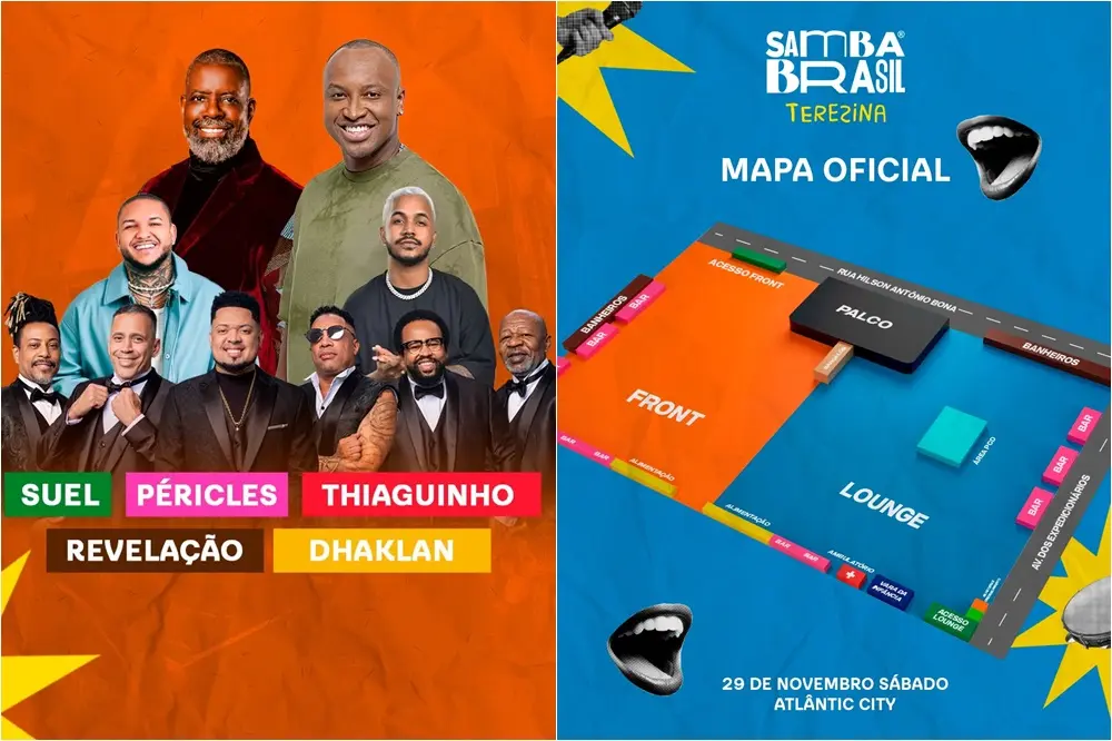 Organização altera local e confirma shows de Thiaguinho, Péricles e RevelaçãoO Samba Brasil Teresina, marcado para sábado (29/11), mudou de local e será realizado no Atlantic City. A decisão atende à orientação da Polícia Rodoviária Federal, que recomendou evitar dois grandes eventos em datas próximas na BR-343, no caso, o Samba Brasil e o show de Jorge & Mateus, para reduzir riscos e possíveis transtornos no trânsito da região da Arena Carhoo.