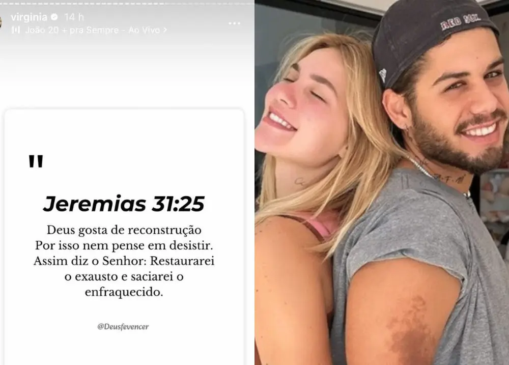 Foto: ReproduçãoVirginia posta mensagem bíblica e reacende rumores de volta com Zé Felipe