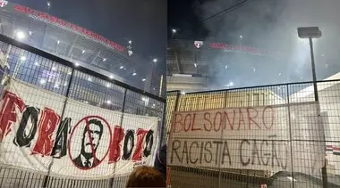 Parte da torcida do São Paulo não aprovou a visita de Bolsonaro à capital. Os torcedores fizeram protestos em frente ao estádio Morumbi pertencente ao São Paulo.