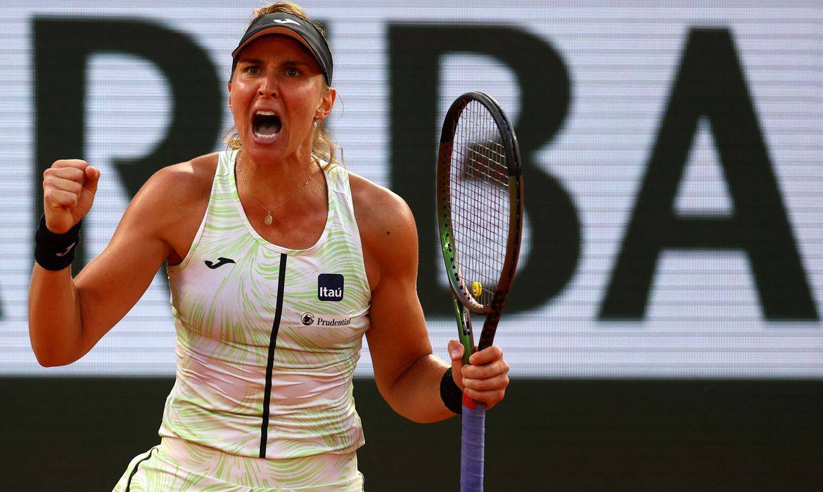 A brasileira vence Jaqueline Cristian 🇷🇴 de virada: 2 sets a 1 (4/6, 6/2 e 6/4).