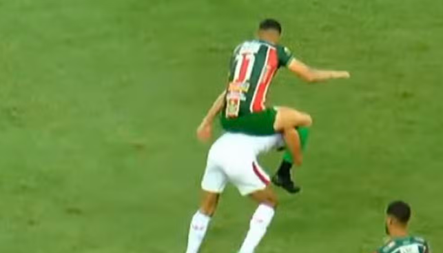 O lance inusitado aconteceu aos 29 minutos do segundo tempo. Léo Bahia acabou subindo na ‘cacunda’ de Rafael Jansen e literalmente fez o gestor de cavalgar no rival. Em seguida, o zagueiro do América ficou irritado e tentou agredir o centroavante.