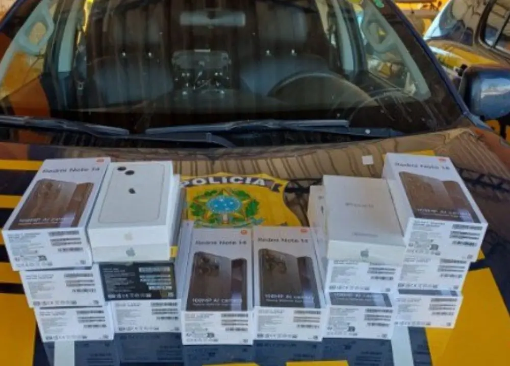 O veículo foi parado pelos agentes e conduzido para um local seguro, onde teve início a inspeção no compartimento de cargas. Entre malas e encomendas, os policiais encontraram uma remessa de celulares sem qualquer documentação fiscal que comprovasse a origem legal da mercadoria.