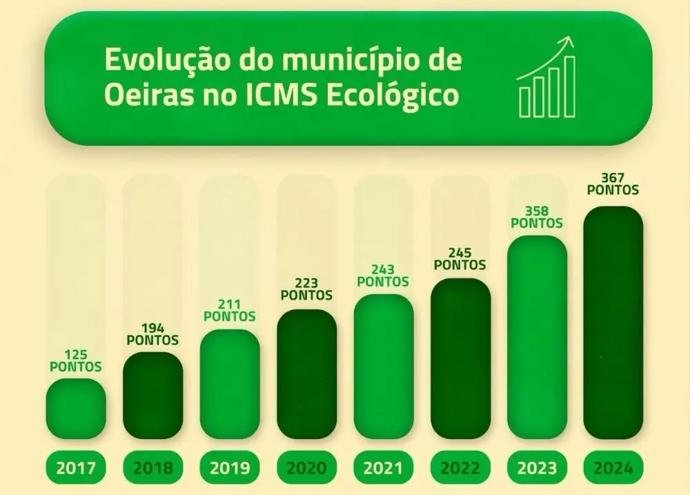 O resultado foi divulgado nesta quarta-feira (08) pela Secretaria Estadual do Meio AmbienteApós seis anos consecutivos na liderança do Piauí no Selo Ambiental do ICMS Ecológico, com certificação A — a mais alta do estado — o município de Oeiras registrou uma queda significativa na avaliação mais recente. A cidade obteve apenas 150,5 pontos, passando a figurar com o Selo C. Em edições anteriores, o município já havia alcançado até 367 pontos.