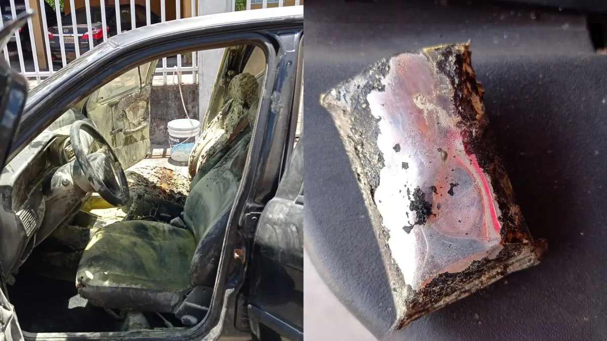 Bateria de celular pega fogo e incendeia carro em Barras
