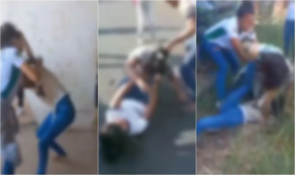 Em um dos registros, mostra duas meninas se agredindo no meio da rua, após saírem da escola. Um menino tenta separar a briga puxando o cabelo de uma delas.