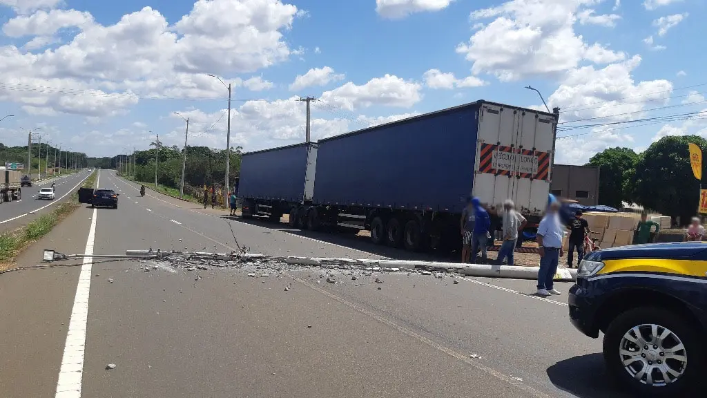 Ao retomar a marcha à ré, o veículo acabou colidindo com um poste de iluminação pública. O impacto foi forte o suficiente para derrubar o poste sobre a pista, bloqueando completamente a estrada.