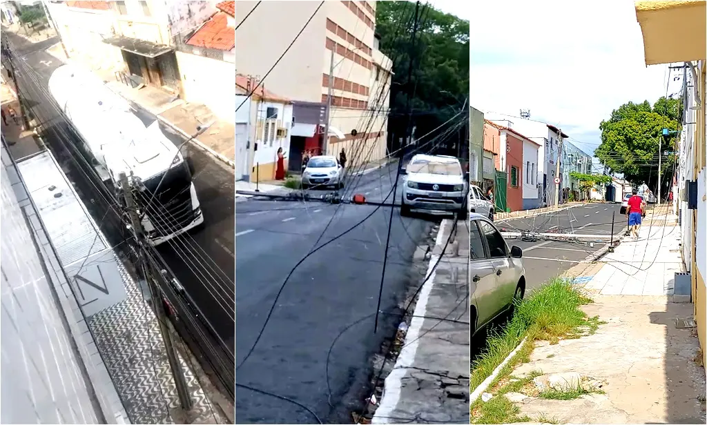 Um caminhou derrubou postes neste domingo (03/12) no Centro de Teresina. Moradores denunciaram ao Conecta Piauí que não é a primeira vez que isso acontece e que o caso gera diversos transtornos.