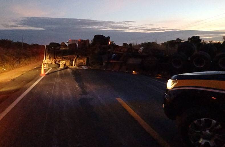 Carreta tomba e interdita dois sentidos do trecho da BR-316 em Valença do Piauí