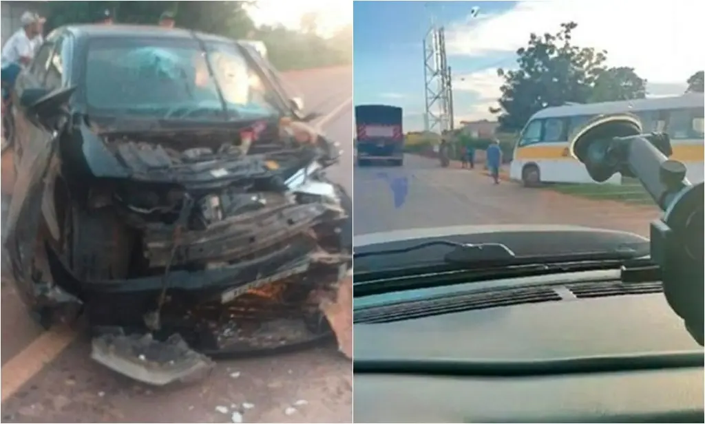 Carro colide contra ônibus escolar e acidente deixa feridos em município no Piauí