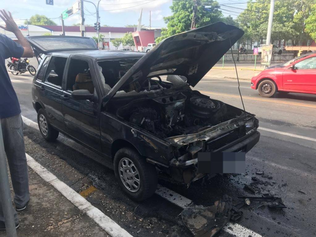 Condutor relatou que Bombeiros foram acionados por populares e que rapidamente extinguiram as chamasUm carro de modelo Fiat Uno 2004 pegou fogo e ficou completamente destruído na avenida Homero Castelo Branco, zona Leste de Teresina, na manhã desta segunda-feira (27/11). O condutor e proprietário do veículo, Antônio Estêvão de Brito, relatou que outro motoristas o alertaram que seu carro estaria fumaçando enquanto ele percorria a avenida João XXIII, zona Leste de Teresina, e após ser alertado, estacionou na avenida Homero para tentar sanar a situação.