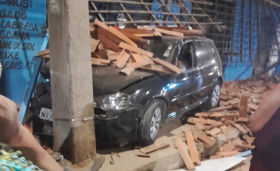 Carro invade calçada e destrói fachada de comércio ao perder controle em Teresina
