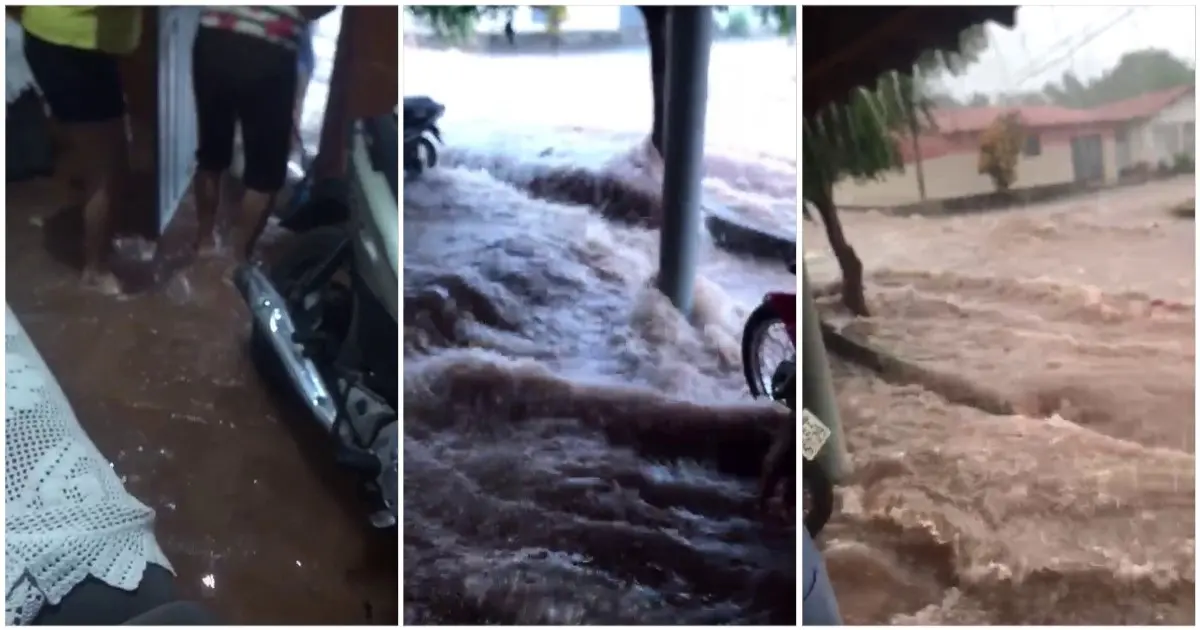 Casas ficam alagadas após pancadas de chuva na cidade de em Pedro II