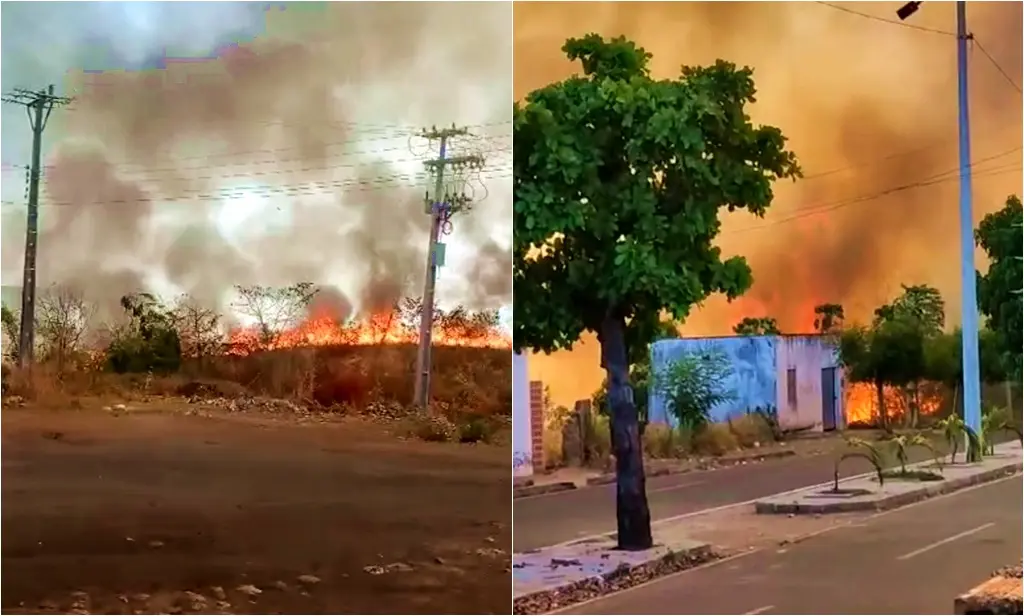 Um vídeo enviado ao Conecta Piauí, mostra as chamas acontecem próximas a residências e assusta moradores.
