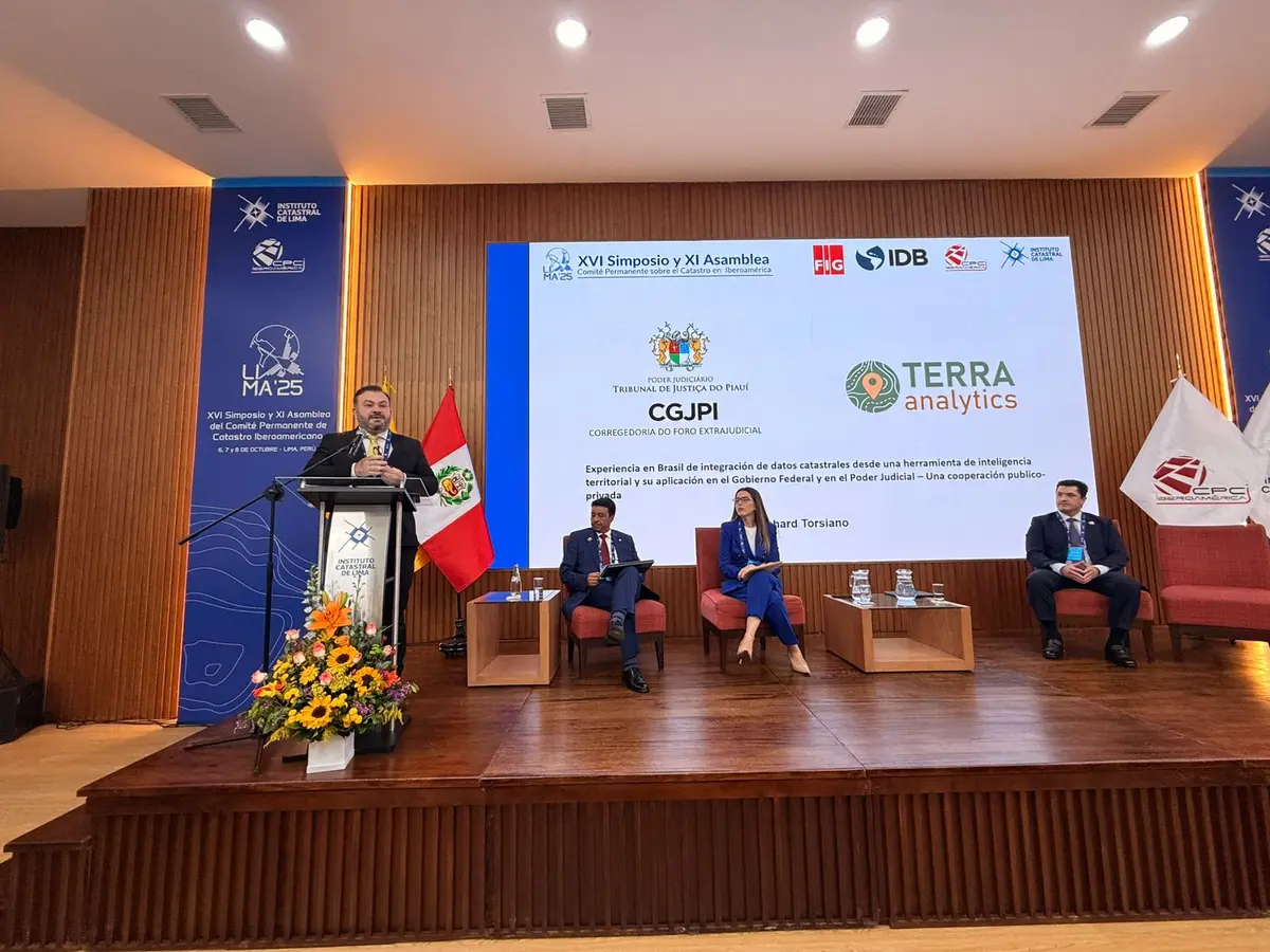 Brasil apresentou case pioneiro de integração de dados e regularização fundiária e ambientalO Brasil marcou presença no 16º Simpósio e 11ª Assembleia do Comitê Permanente sobre o Cadastro na Ibero-América, realizado em Lima, no Peru, com a apresentação de um case inovador de integração de dados territoriais na promoção de uma política pública de regularização fundiária no estado do Piauí , conduzido pela Corregedoria Geral de Justiça do Estado.